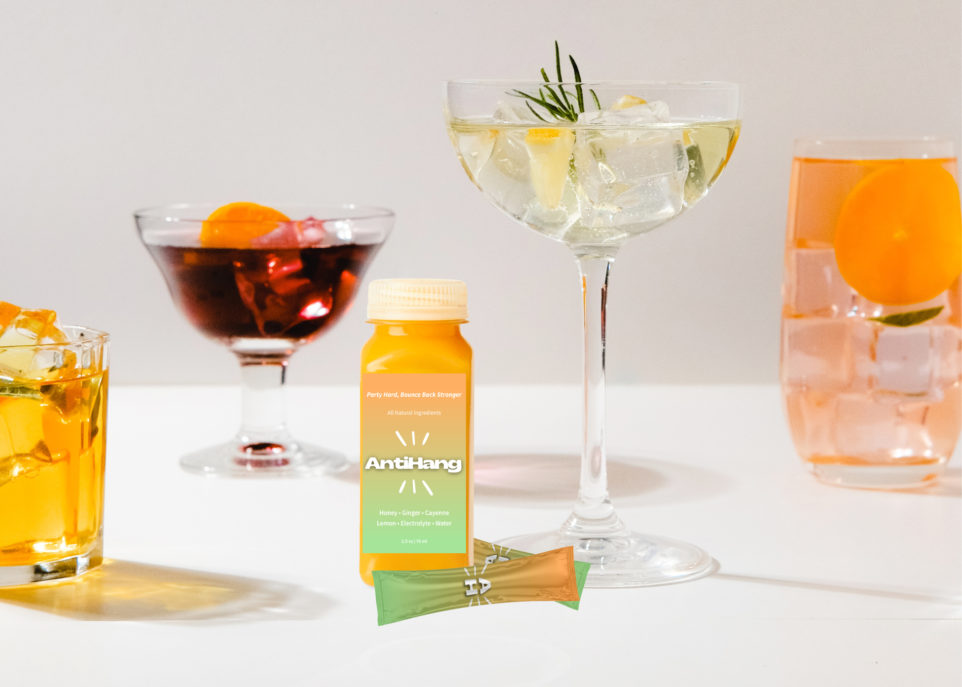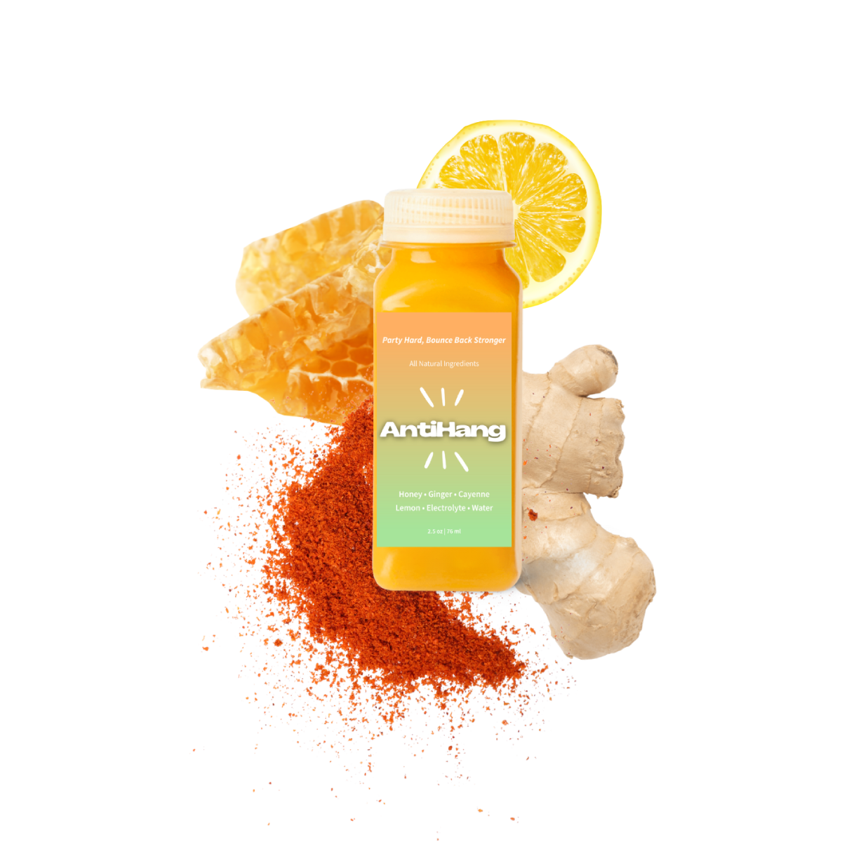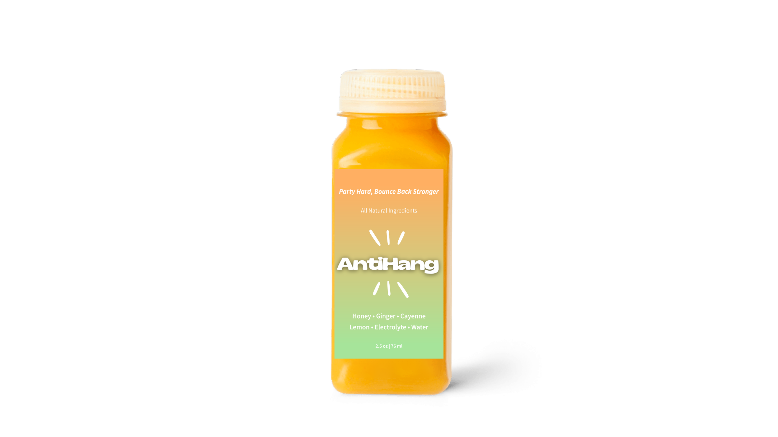 AntiHang is the ultimate hangover cure, letting you party hard without worrying about the next day. Choose between an immunity shot or an electrolyte mix, both designed to keep you hydrated and nutrient-enriched for a quick recovery and a fresh start.